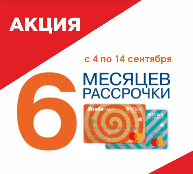 С 4 по 14 сентября 2023 г. расширенная рассрочка по карте Халва - 6 месяцев без первоначального взноса и переплат.